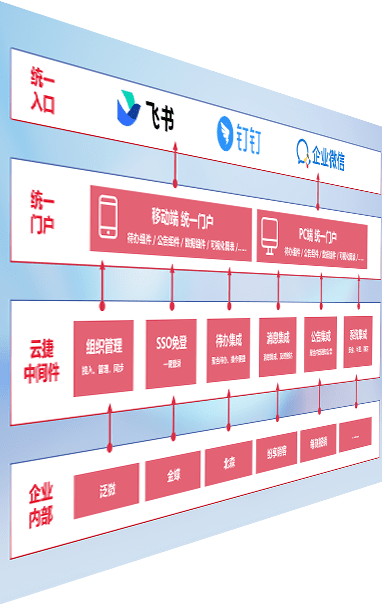 对协作平台提供支持服务,,支持企业应用与协作平台对接,,,,包含组织同步、、、、消息集成、、、、待办集成等。。。。支持目前主流的协作平台:钉钉、、、企微和飞书。。。